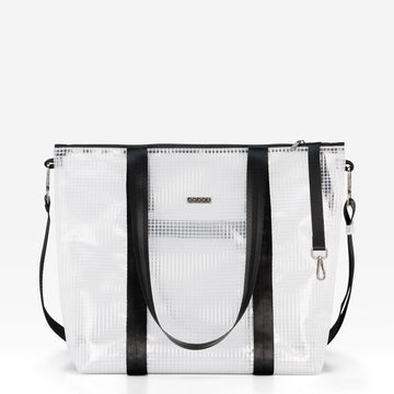 EMO Plus is the evolved version of our essential shopper. It maintains the clean and minimalist aesthetic of the EMO Basic, but adds everything many of you asked for: a top zipper closure, an exterior pocket also with zipper, and a removable handle that allows you to carry it as a crossbody or, if you remove it, attach it to a baby stroller or adapt it for other uses.